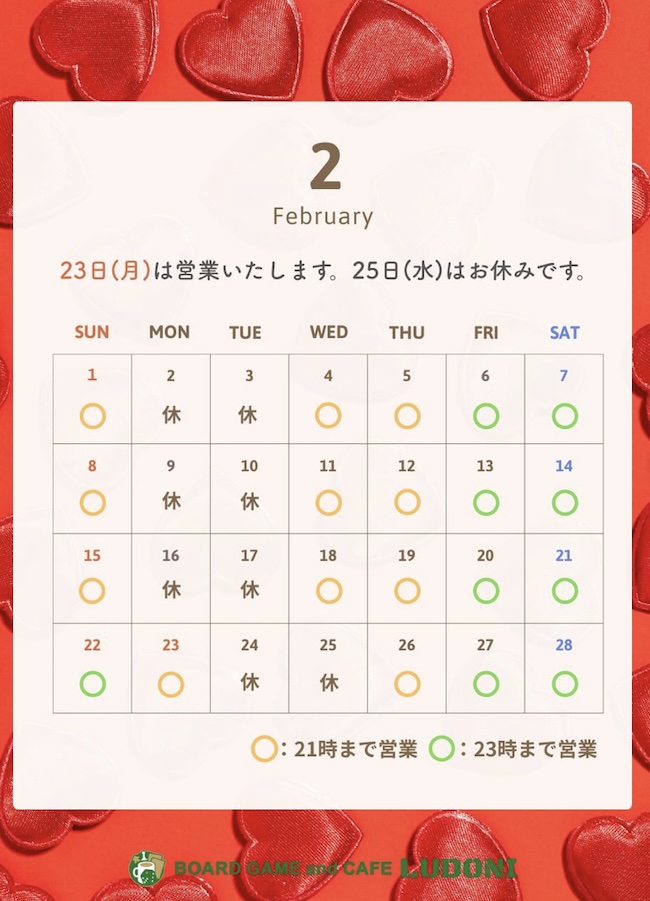 2026年 2月の営業時間