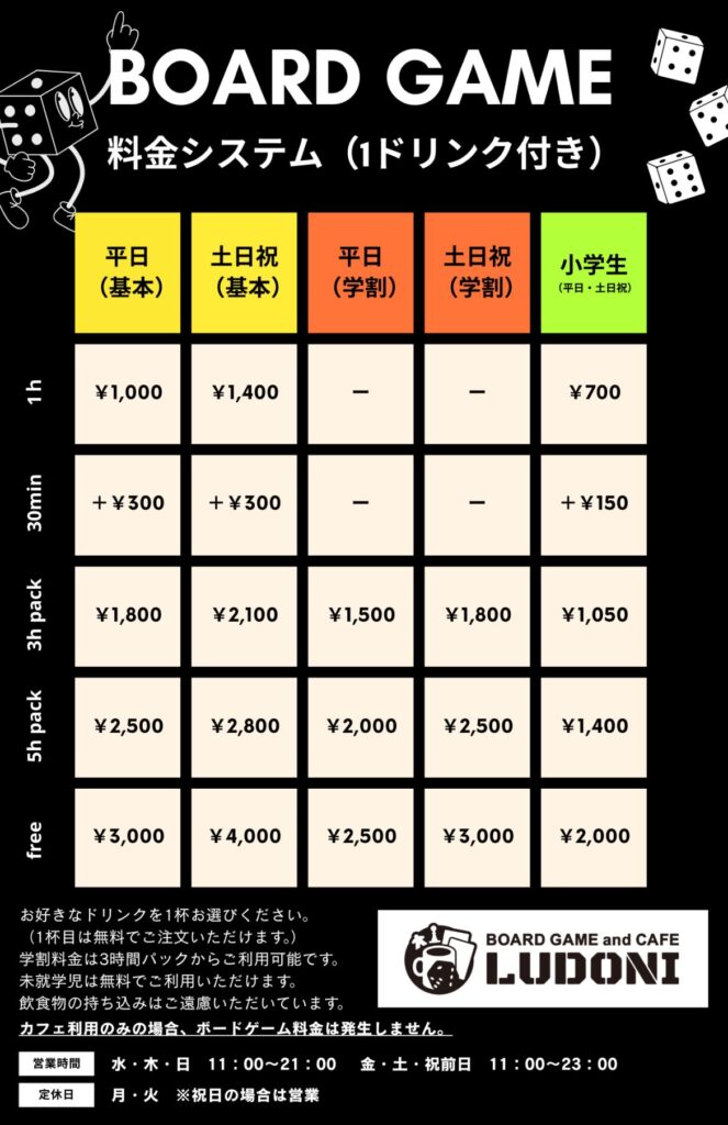 料金 ご友人やご家族と一緒に、店内にズラーと並んだを500種類以上のボードゲームからお好きな物を選んでゆっくりとお楽しみください😊 SNSにて新しいゲーム紹介やイベントなどなど情報を発信中。ぜひフォローをよろしくお願いします。